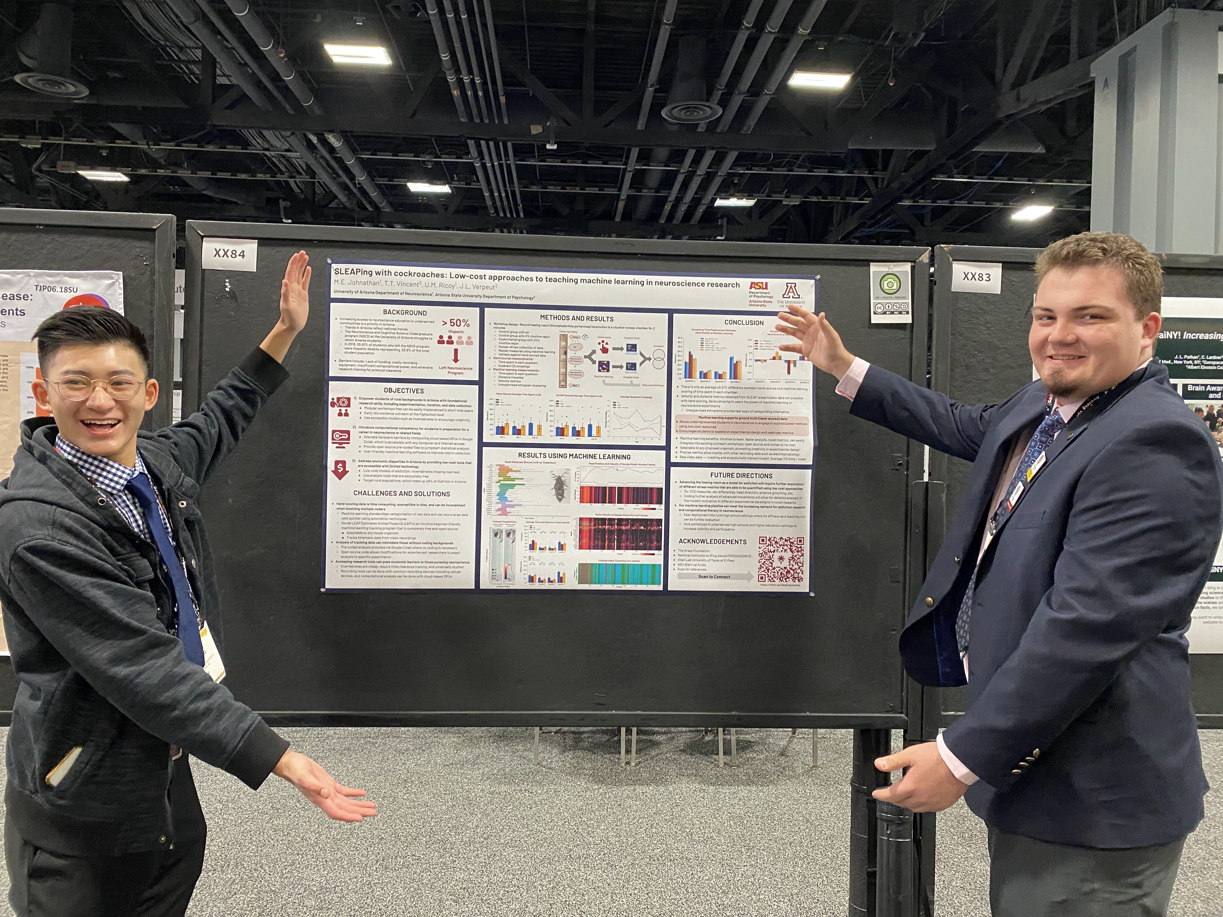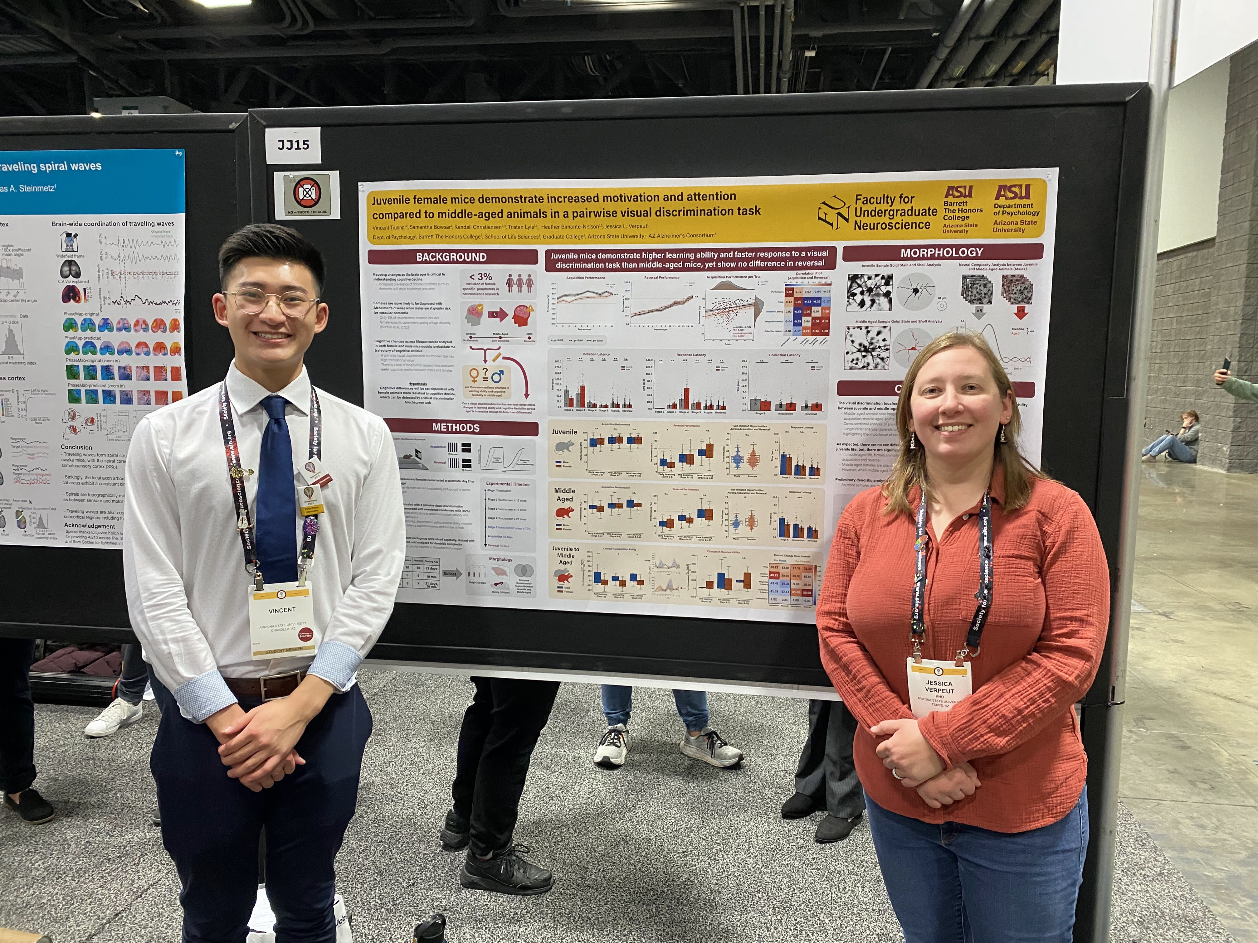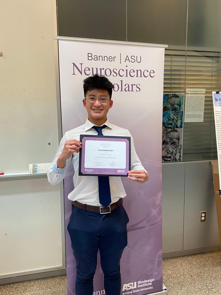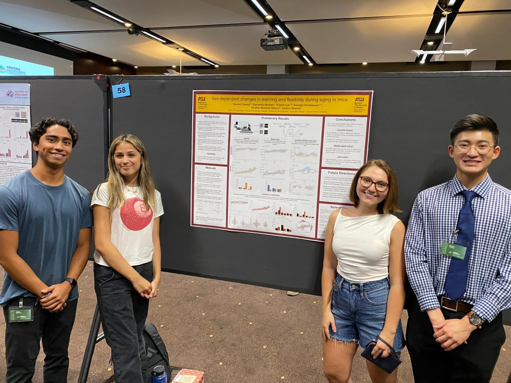 This summer Vincent Truong (top left and middle) completed the Banner-ASU Neuroscience Scholars program. Carlos Quintero (top right and bottom) and Lavanyaa Gupta (bottom right) completed the Helios Scholars program at TGen. Carlos was invited to present at the closing symposium and Lavanyaa won a poster award. New research assistants for the summer and 24-25: Peter Demetri, Dua Faraz, Hannah Yang, Jake Debreceni, Lucas Lidel, Kristin Elbeh, and Meriela Bejan to join the lab.