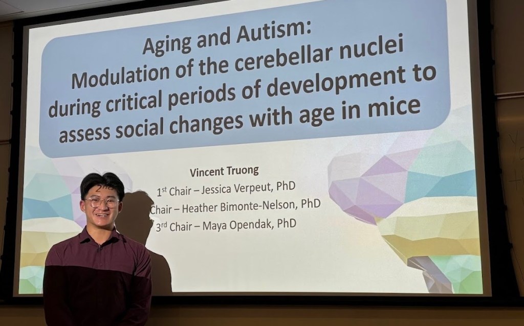 Vincent Truong successfully defended his thesis! He also published his first manuscript in eneuro and was highlighted in STAT News (Thanks to co-authors John Moore and Dr. Ulises Ricoy)!